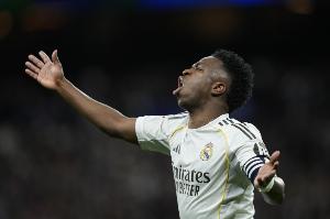 体育资讯3月23日讯 西甲第29轮比赛,维尼修斯打进2球,皇马主场3-2领先马竞。
