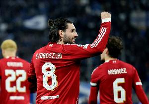 体育资讯3月16日讯 英超第30轮,利物浦主场迎战热刺,索博斯洛伊任意球破门。