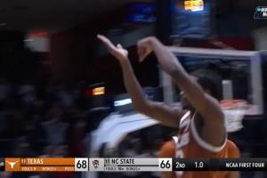 疯三外卡赛,德克萨斯大学特拉蒙·马克1.1秒中投绝杀,撒盐庆祝